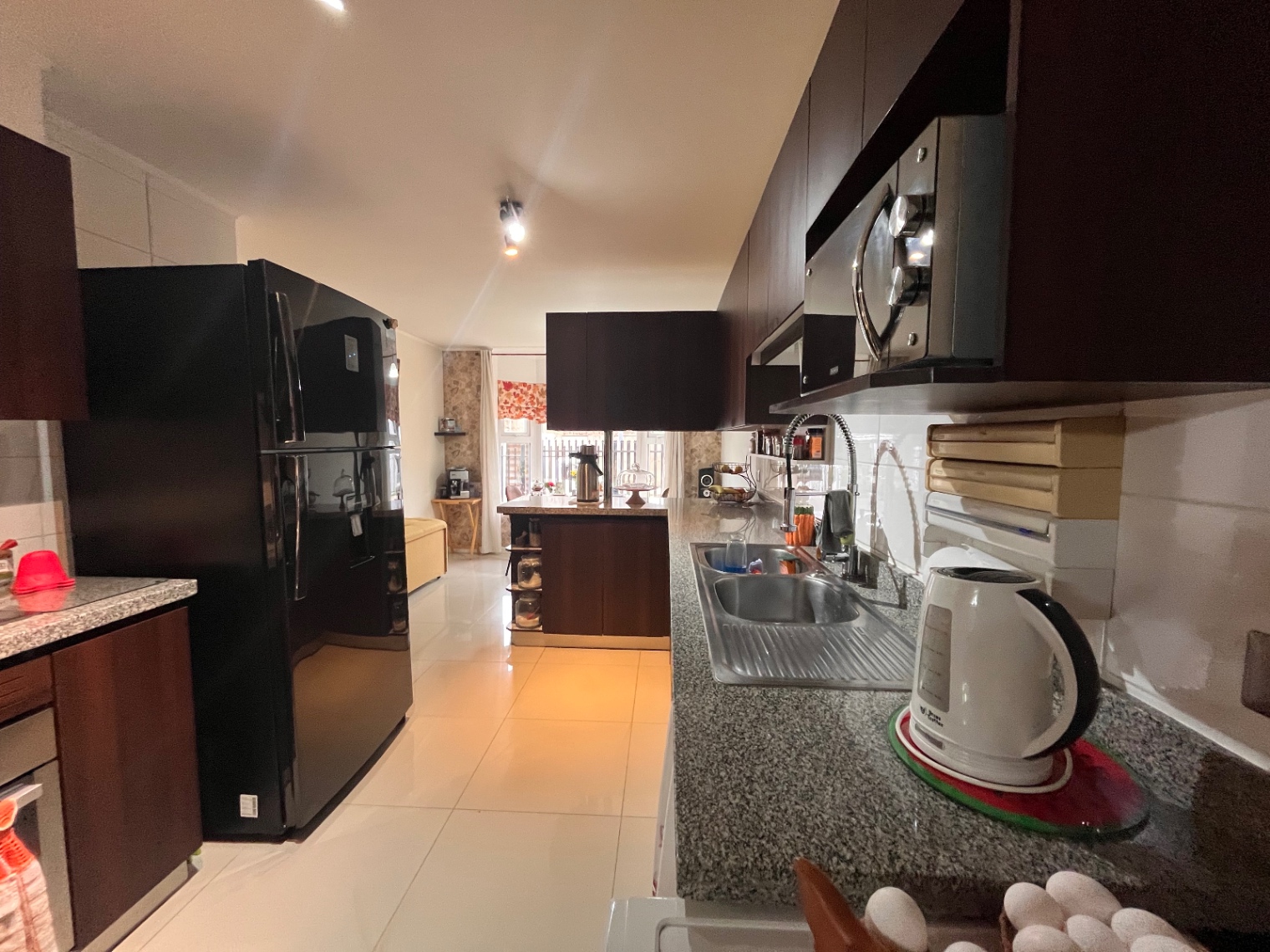 La distribución de la propiedad incluye 3 dormitorios en el segundo piso, 2 baños completos más un baño de visitas, una gran cocina independiente y un living-comedor que se inunda de luz natural. Además, cuenta con una sala de almacenamiento y bodega, así como un departamento interior equipado con dormitorio, lavaplatos y baño, ideal para recibir visitas o como espacio adicional. El patio es perfecto para compartir momentos en familia, y el estacionamiento tiene capacidad para 3 vehículos, con reja automática para mayor seguridad.